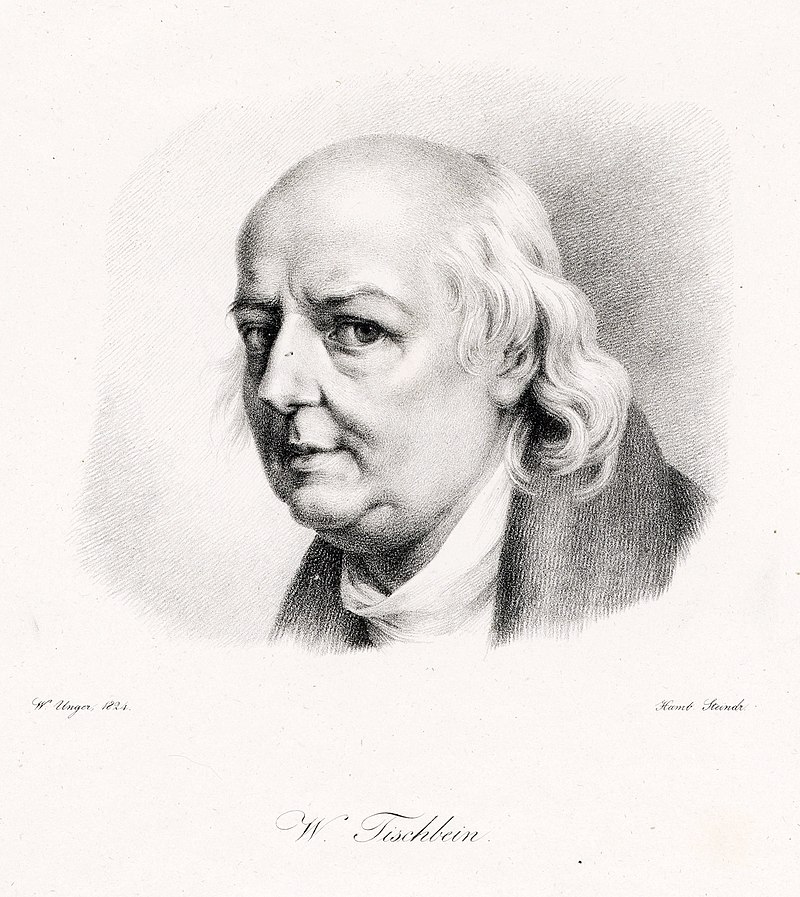 Tischbein war dann von 1789-1799 Direktor der „Akademie der schönen Künste“ in Neapel, ging 1799 nach Deutschland zurück, gründete in Göttingen eine „Zeichenakademie für Damen“ und setzte seine kunstpädagogische Tätigkeit nach seiner Heirat 1801 in Hamburg fort mit einer Zeichenschule. Als sich der Hamburger Senat weigerte, die Kunstschule zu finanzieren, nahm er das Angebot von Peter I., Peter Friedrich Ludwig („PFL“), Prinzregent des Herzogtums Oldenburg, an, Hofmaler und Galeriedirektor an seinem Hofe zu werden. Peter I. („PFL“ s. Rundgangstation 13) kaufte auch die gesamte Gemäldesammlung Tischbeins an. Die große Zeit in Eutin begann!